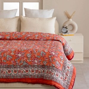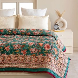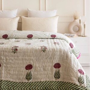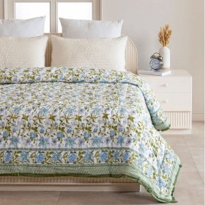 - Sage Green Printed Floral Boho Cotton Quilt: Fresh floral patterns on premium cotton, combining softness with vibrant charm.