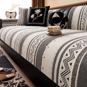 - Boho Geometric Chenille Sofa Cover: Adds texture and protection to your seating, this boho geometric chenille sofa cover is crafted with polystyrene for durability.