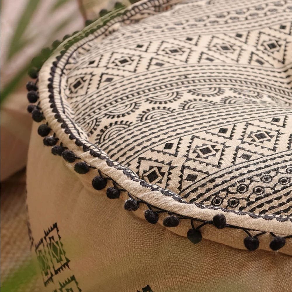 Transform your living area with this Black and Beige Tribal Boho Ottoman Pouf. Handcrafted from soft cotton, it serves as both a stylish seat and a unique decorative accent. Perfect for cozy gatherings or as a chic footrest, this pouf effortlessly enhances your home’s natural, minimalist vibe.