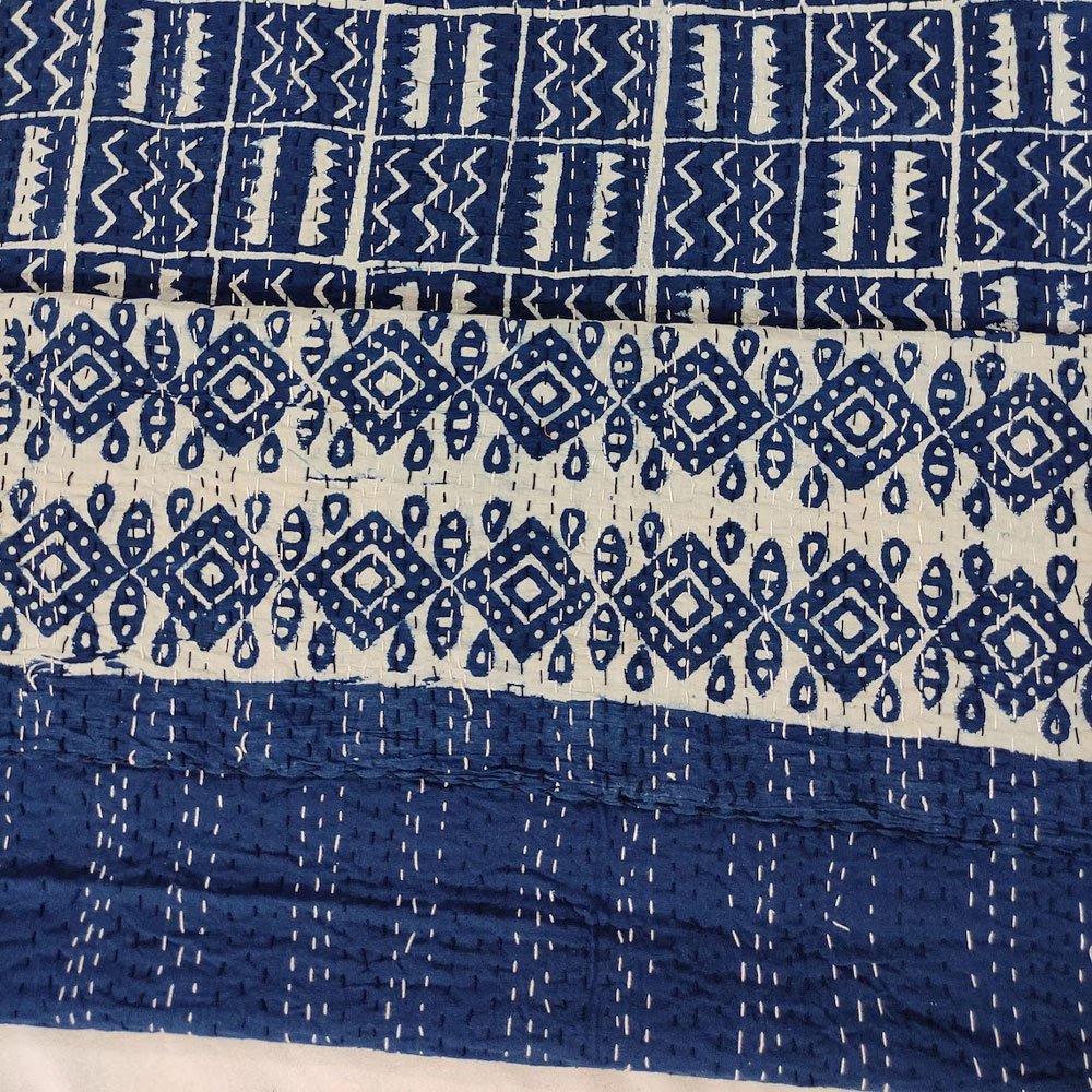 Elevate your space with this exquisite hand block printed kantha bedspread, crafted from soft 100% cotton. Its unique design and intricate stitching not only provide comfort but also infuse your room with a touch of bohemian elegance. Perfect for cozy nights or as a stylish throw, this versatile piece is a must-have for any home.
