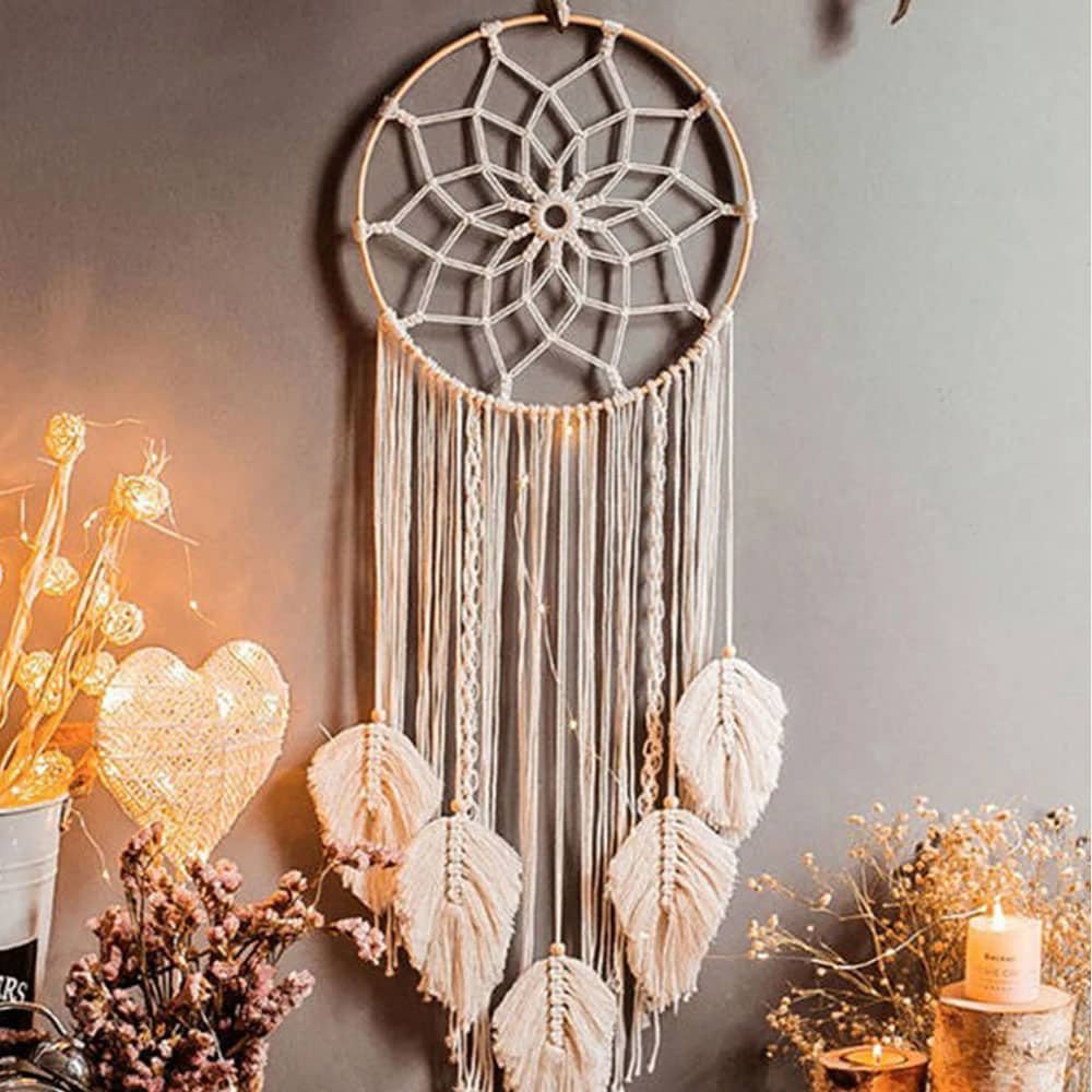 Elevate your home decor with this stunning Boho dream catcher macrame wall hanging. Perfect for adding a touch of warmth and texture, it creates a serene atmosphere in any room. Ideal for bedrooms, living areas, or as a unique party decoration, it not only beautifies your space but also serves as a protective talisman for sweet dreams.