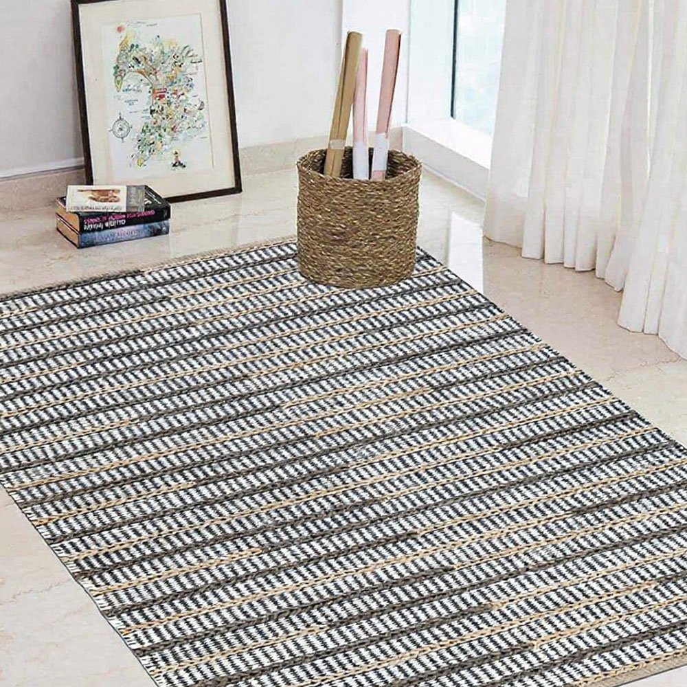 Transform your space with the natural elegance of our Boho textured stripe jute rug