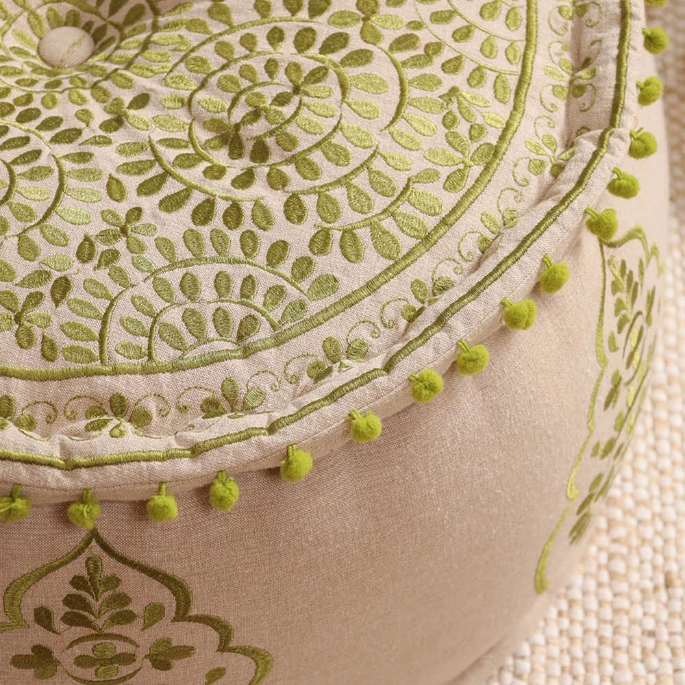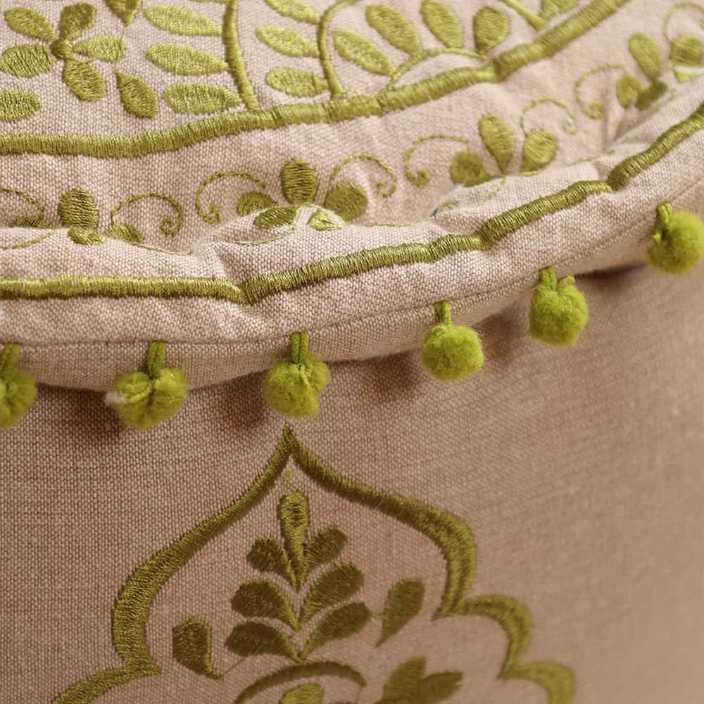 Transform your living area with the Green and Beige Floral Boho Ottoman Pouf. Handcrafted from soft cotton, this pouf not only serves as a cozy seat but also as a stunning decorative accent. Perfect for any room, it invites relaxation and creativity, making it an essential addition to your boho-inspired home.