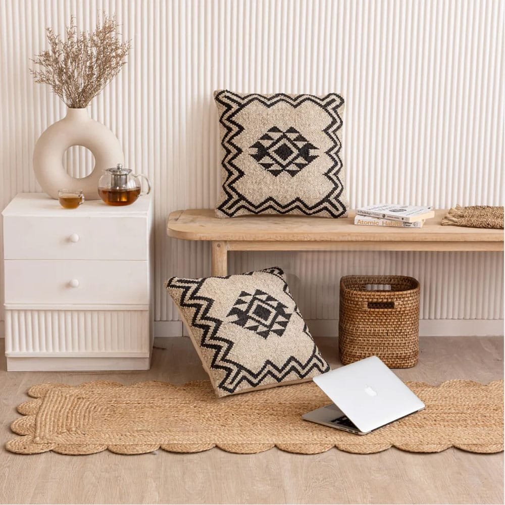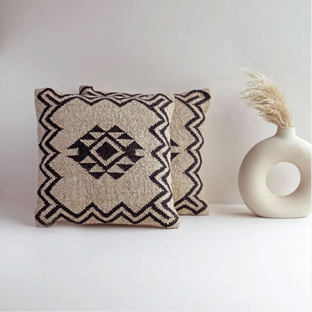 Transform your living area into a serene retreat with these handwoven cushion covers, crafted from 100% natural jute. Their unique ethnic patterns and soft grey and gold hues effortlessly blend with any decor, inviting warmth and comfort into your home. Perfect for cozy evenings or vibrant gatherings.