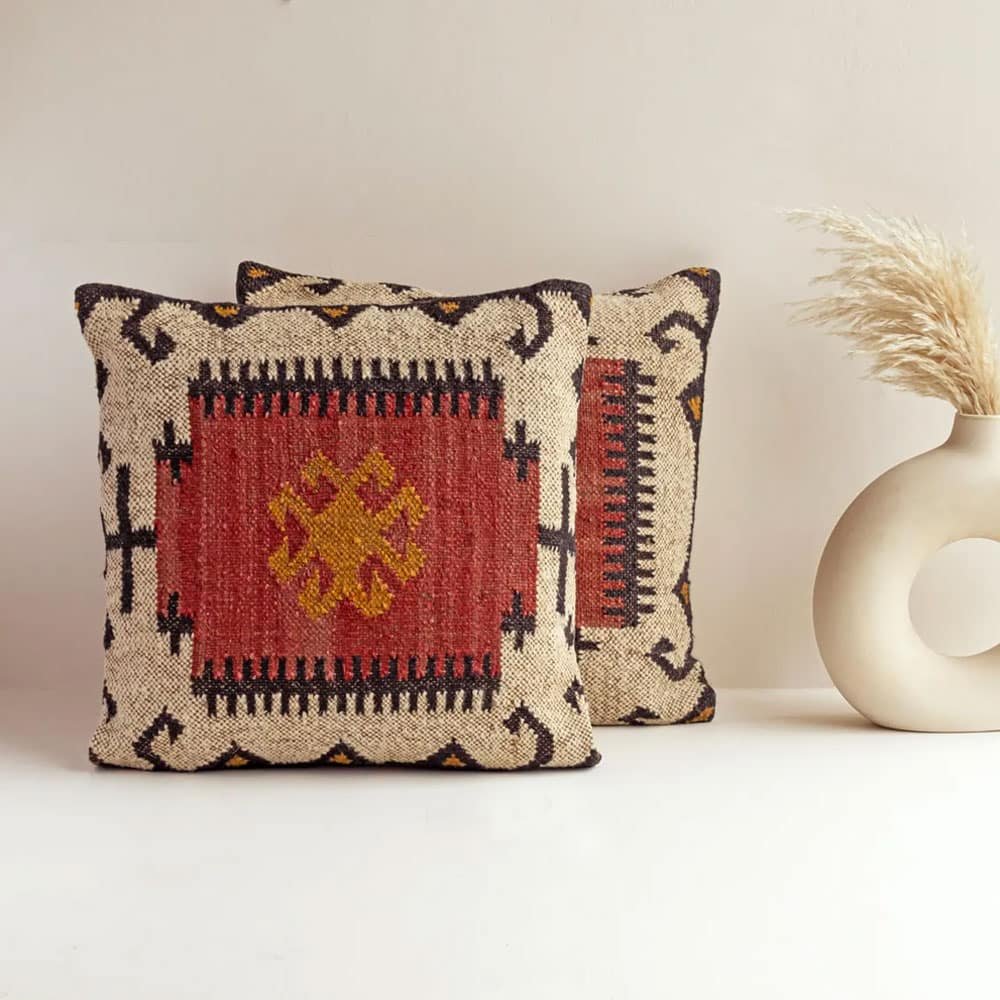 Transform your living space with these handwoven cushion covers, crafted from 100% natural jute. Their unique ethnic patterns and warm colors create a cozy atmosphere, perfect for any season. Ideal for adding a bohemian flair to your sofa or bed, these pillows invite comfort and style into your home.