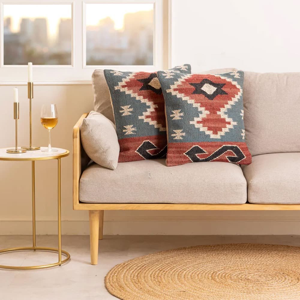 Transform your living area into a cozy retreat with these handwoven jute pillows, featuring a unique ethnic pattern. Perfect for adding warmth and character, they invite relaxation and style, making them ideal for any season or occasion. Embrace the beauty of natural materials in your home decor.
