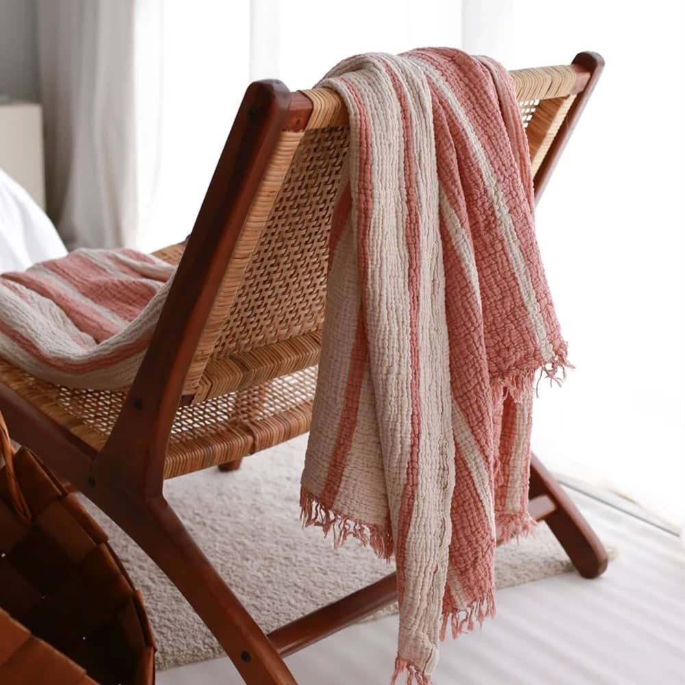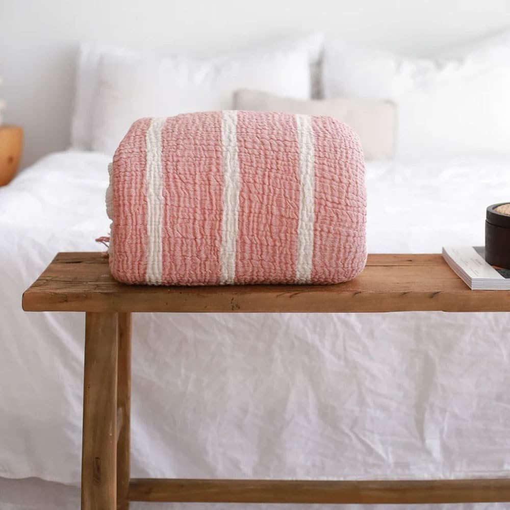 Transform your bedroom into a serene sanctuary with our soft striped muslin bedspread
